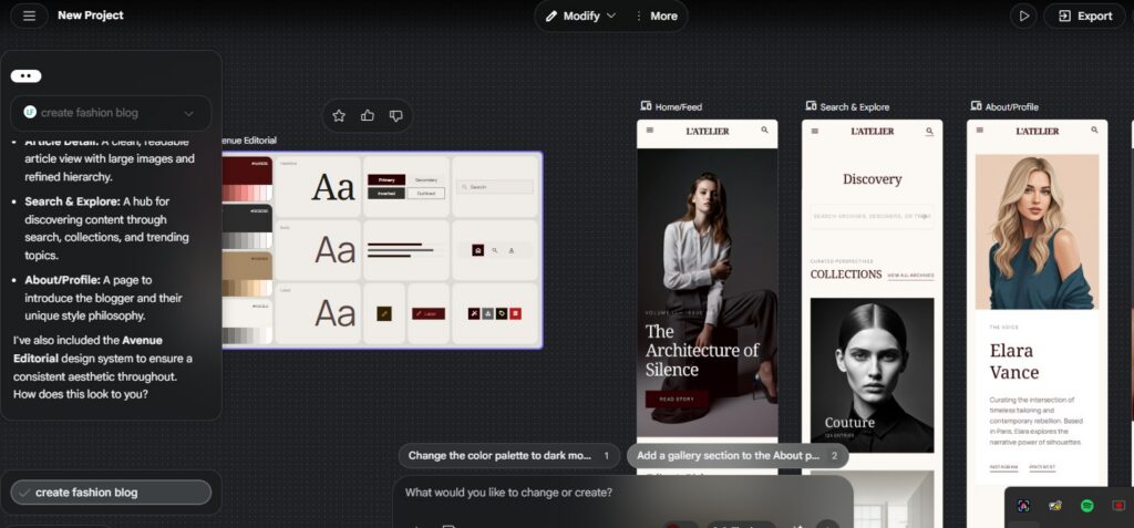 - AI-powered design tool from Google that helps you create app and website UI designs automatically using text, images, or prompts.