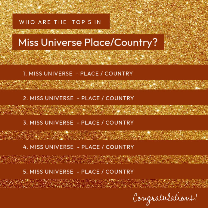 Perfect for – who are the top 5 in Miss Universe design template, event, social media, online show, live blog, media, product design, mockup and any other creative projects you have in mind.